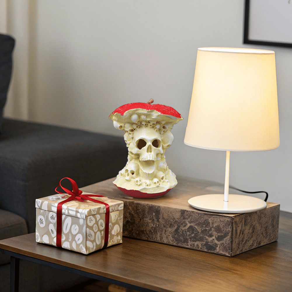 Illuminate your space with mystery and enchantment! Our Skull Apple Lamp combines the eeriness of a skull with the allure of forbidden fruit to create a unique lighting piece that mesmerizes and intoxicates.