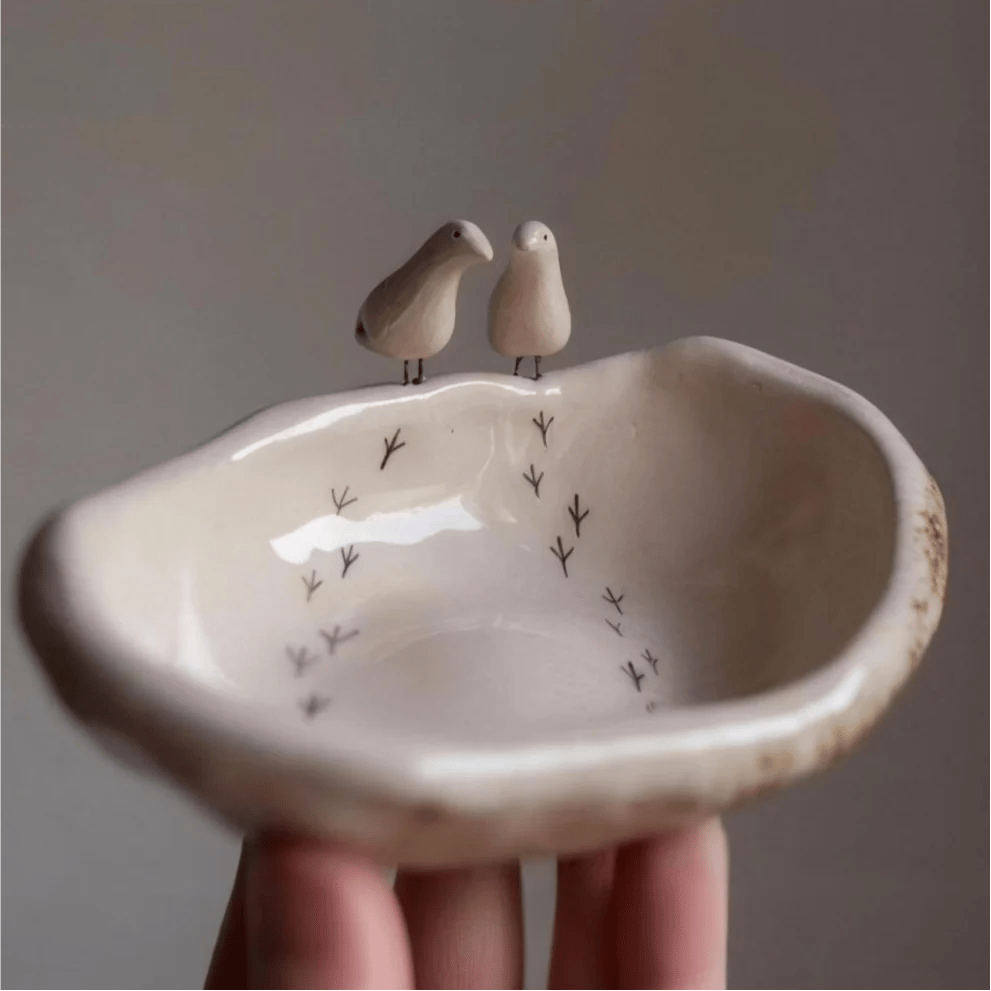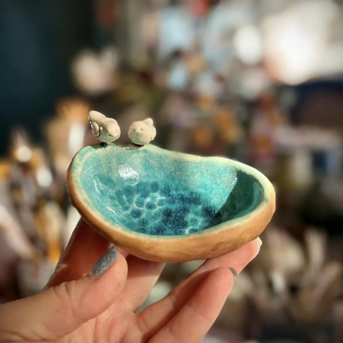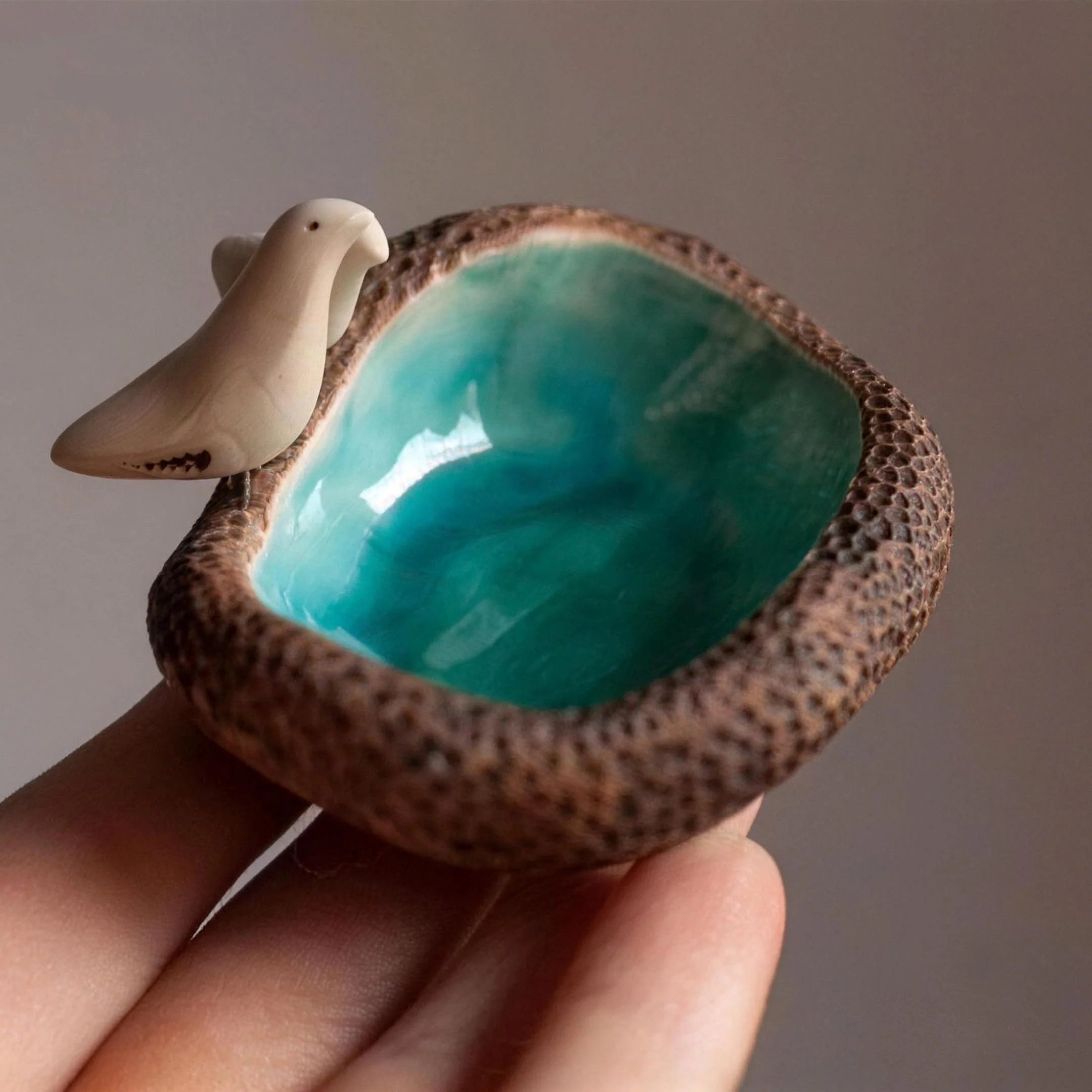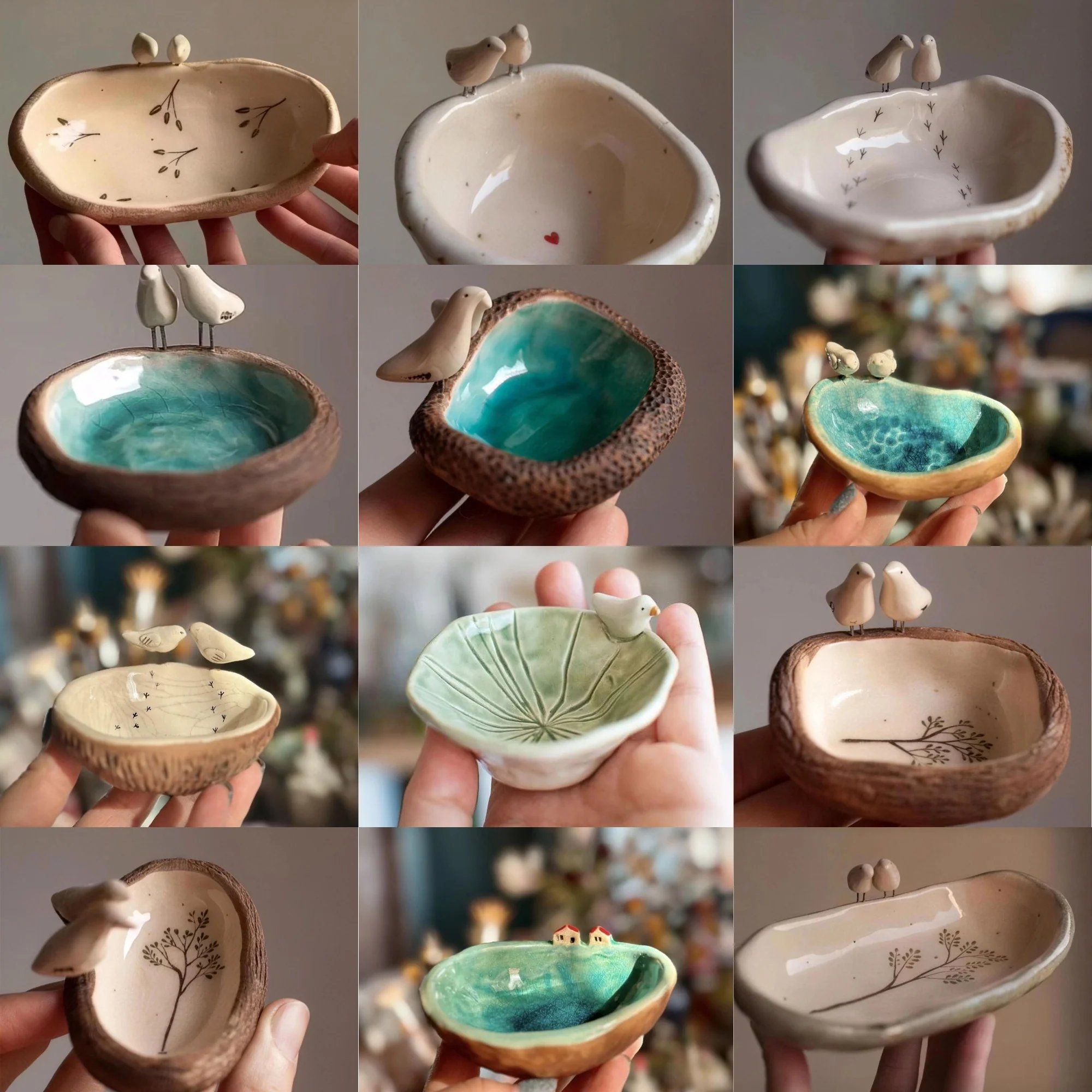 - Available Styles: Cream with branch motifs, turquoise crackle glaze, sage green leaf design, and more (each with unique bird accents)