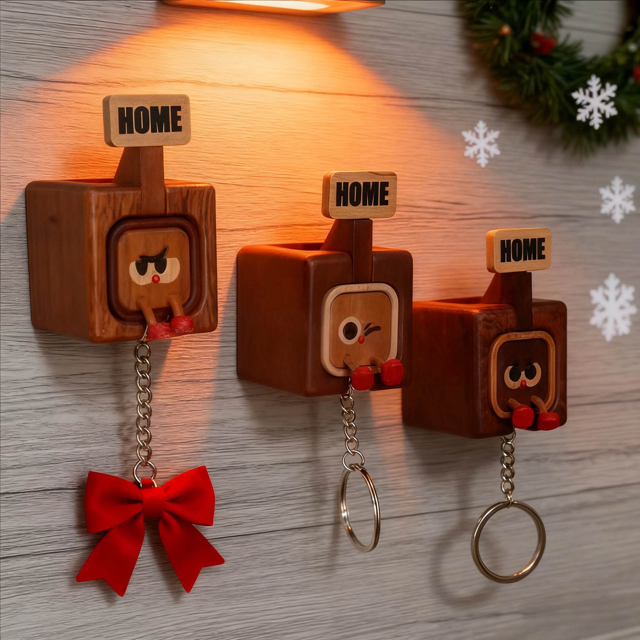 These handcrafted wooden “HOME” key holders are designed with charming cartoon faces and festive details that make every day a little brighter.