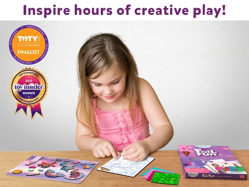 •Foil art & craft activity: Let your child's imagination soar with this magical, mess-free foil art and craft activity. They can create stunning pictures featuring princesses, fairies, and unicorns, sparking hours of creative play!