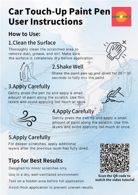 Designed for everyday car care, this touch-up pen offers a convenient and cost-effective way to maintain your vehicle’s appearance. A practical addition to any car care routine—simple, efficient, and easy to use.