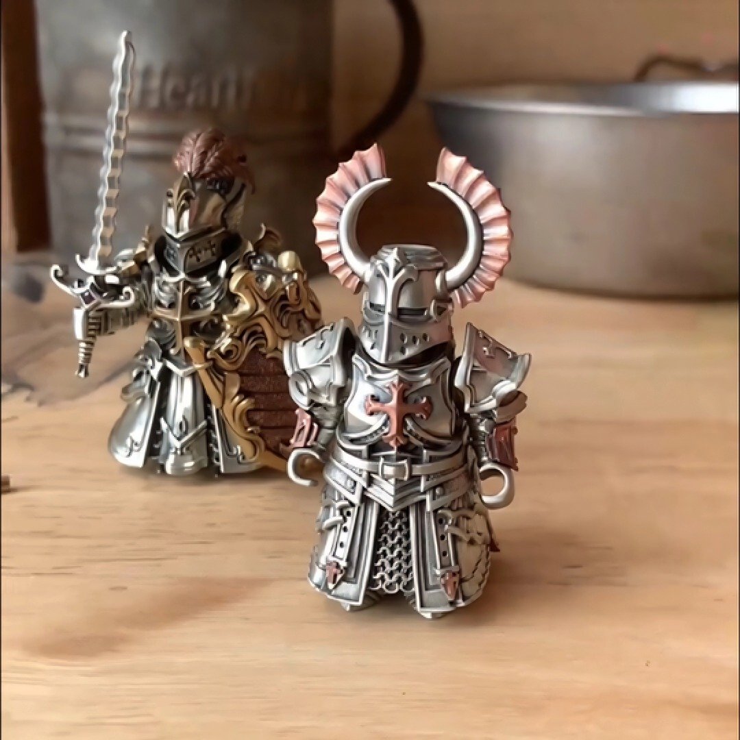 Wielding a sword and shield, his delicate metal texture exudes a commanding presence.