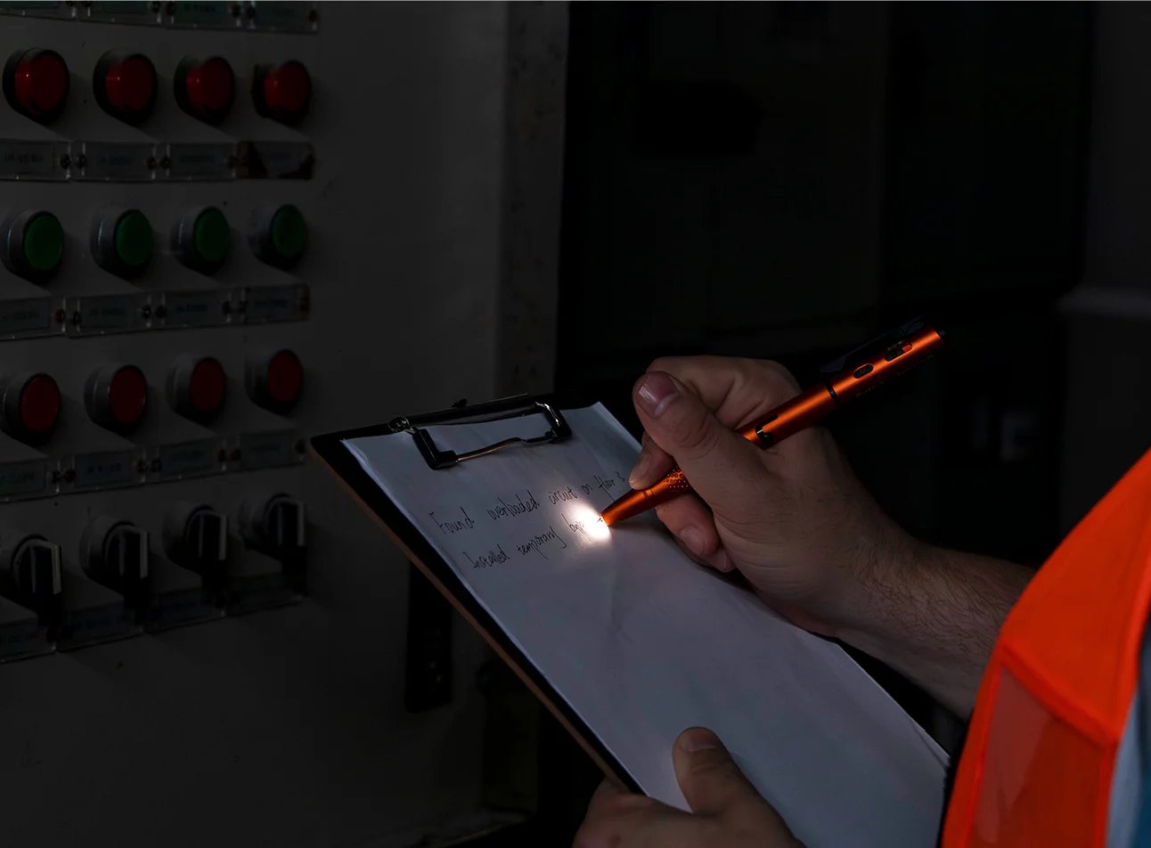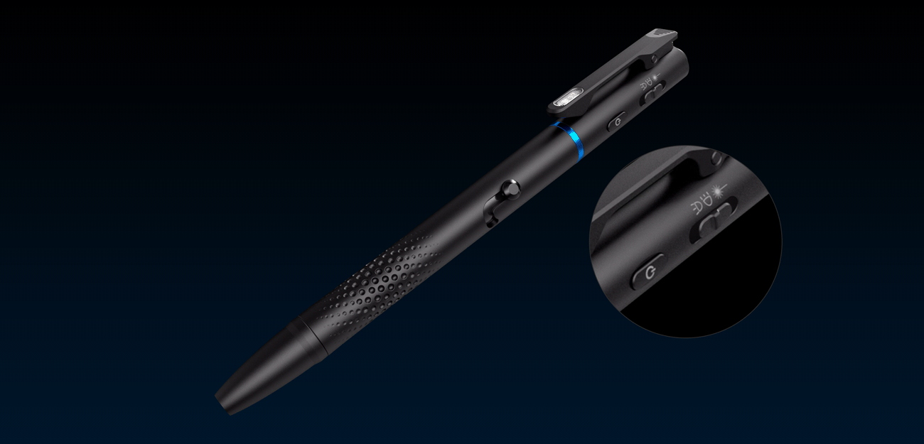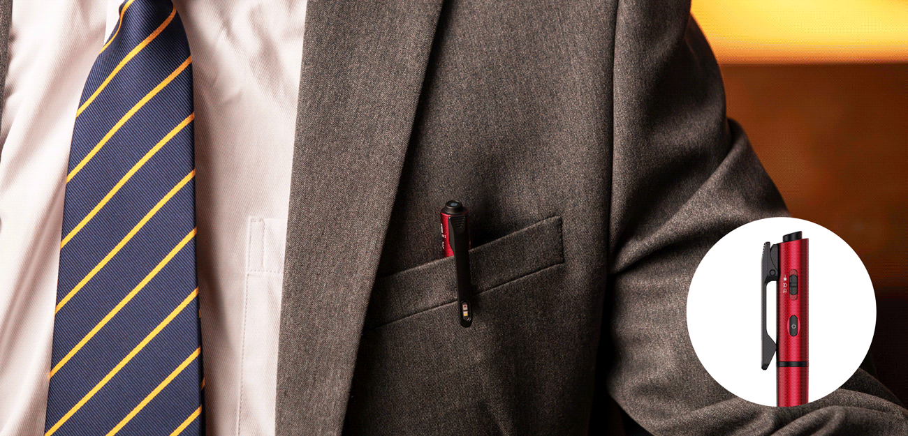 The clip features a 120-lumen white light, a two-stage red light for night vision, and red SOS mode for emergencies. It also features a soft tip light for writing in the dark, and a precise Class 3R green laser pointer with two brightness levels for clear, confident presentations.