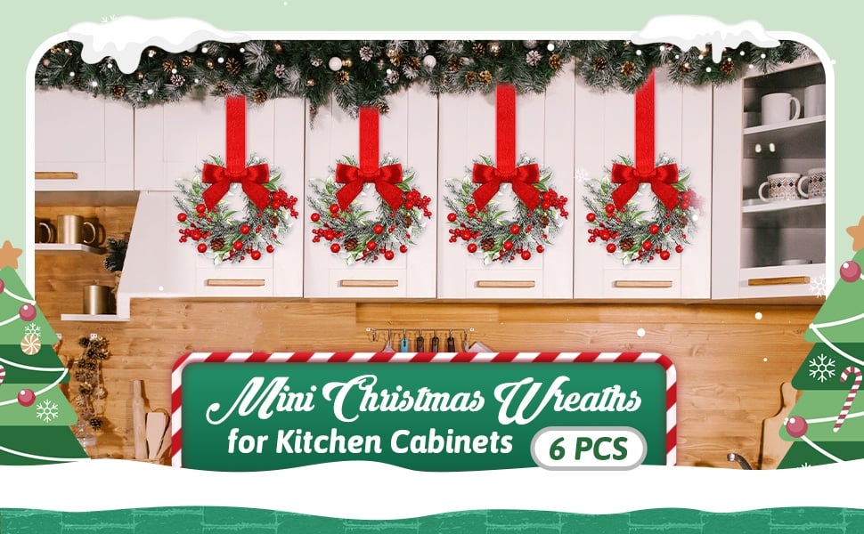 With this set of 6 mini Christmas wreaths, you can fill your kitchen, cabinets, and windows with warmth and cheer.